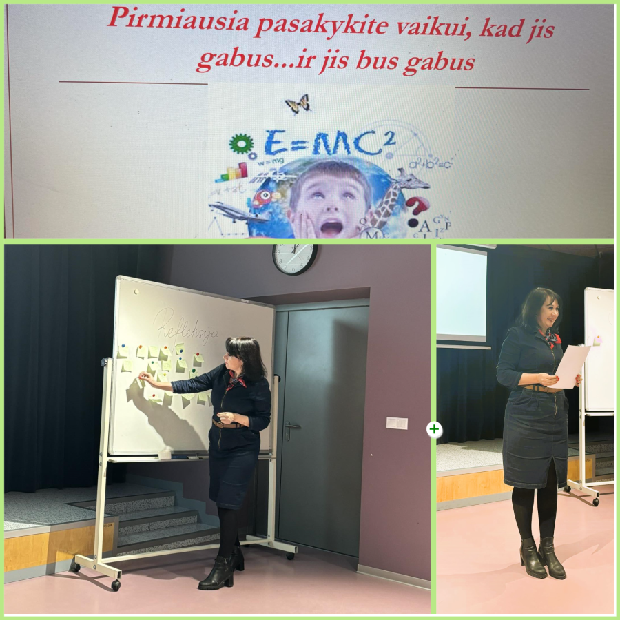 „Vaizdingi, efektyvūs, išsamūs, nenuobodūs ir naudingi pranešimai, ačiū metodininkams“.