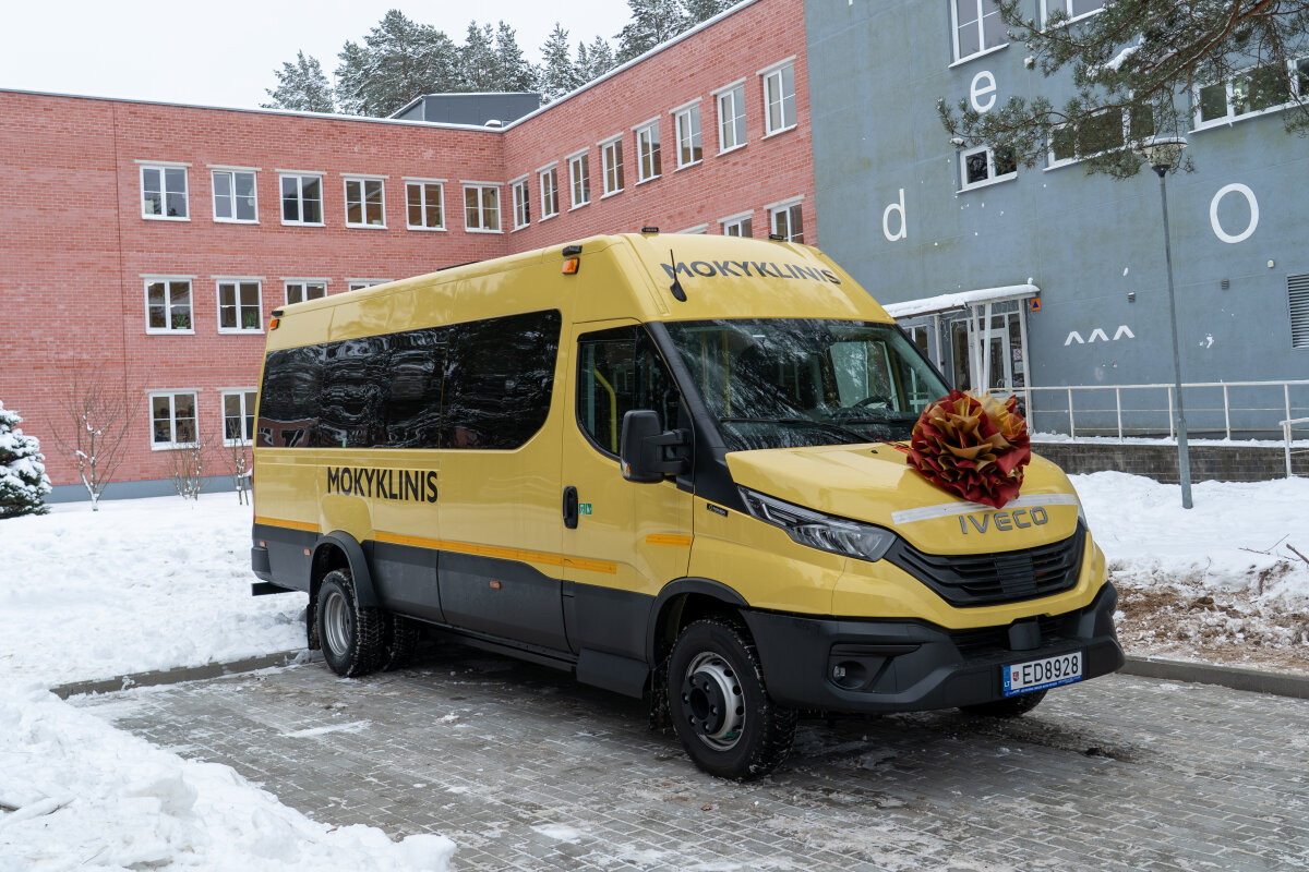 Beveik 185 tūkst. eurų vertės modernus IVECO 72C14E elektrinis mokyklinis autobusas įsigytas įgyvendinant švietimo pažangos programą „Tūkstantmečio mokyklos“ (TŪM). Tai – pažangos plano dalis, kuria ne tik gerinamos ugdymo sąlygos rajono vaikams, bet ir investuojama į žaliuosius sprendimus. Vilniaus rajono savivaldybė pasirūpino autobuso naudojimui būtina infrastruktūra: finansavo 37 tūkst. eurų vertės, 80 kW galios įkrovimo stotelės įrengimą gimnazijos teritorijoje.
