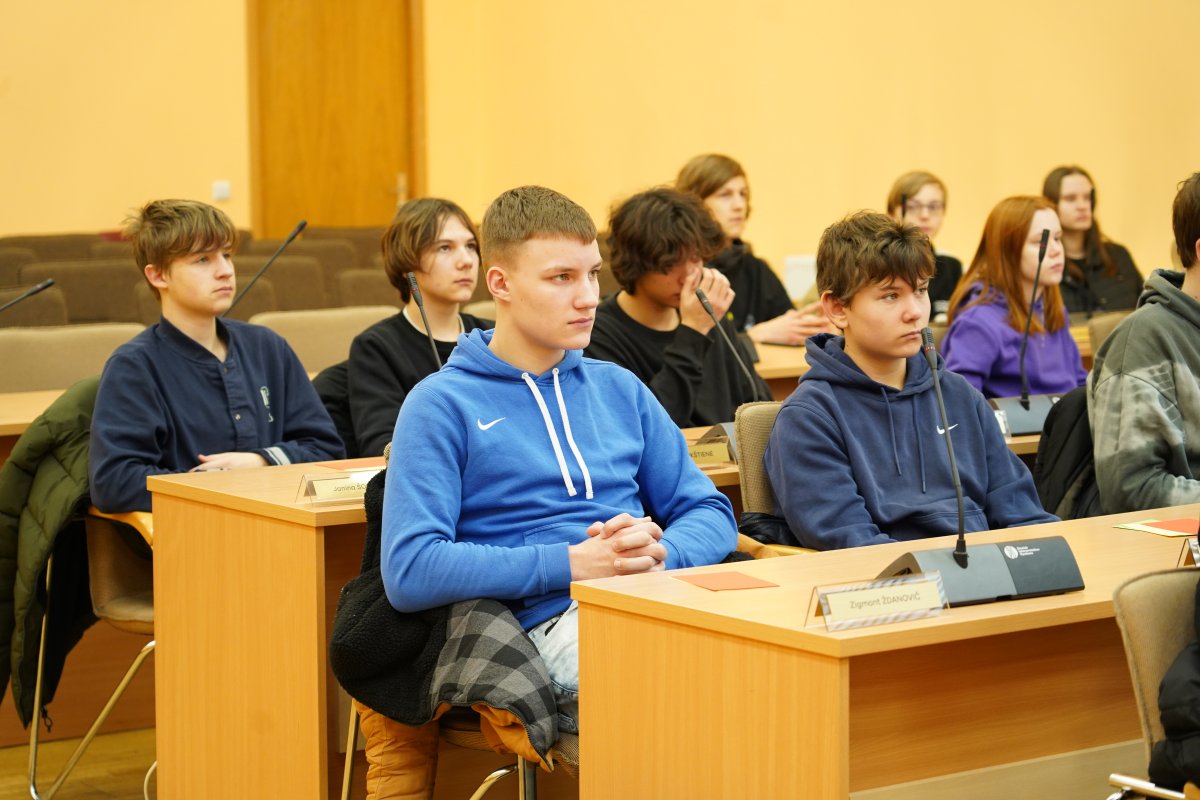 „Smagu Jus čia matyti. Čia jau antras kartas, kai kolegos organizuoja tokius susitikimus, Tarybos posėdžių imitacijas su mokiniais, priartina vietos savivaldą mokiniams“, – pasveikinęs atvykusius mokinius sakė meras Robert Duchnevič.