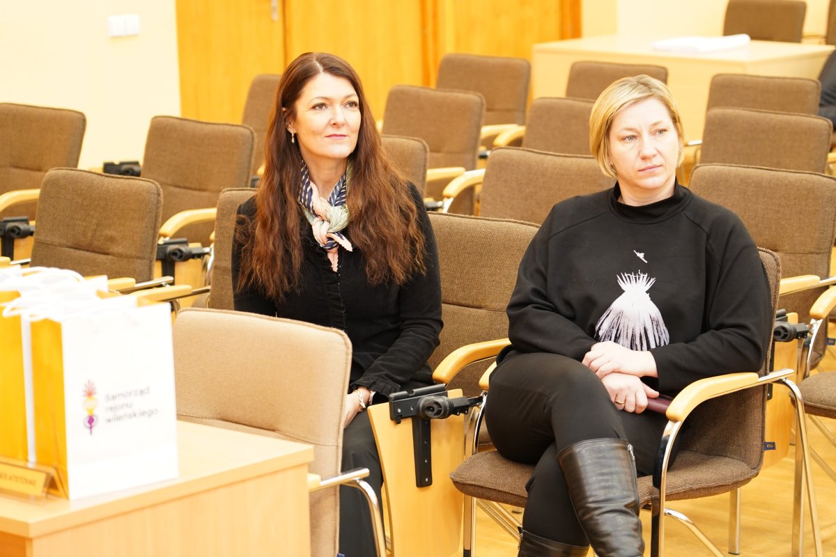 Susitikimui artėjant į pabaigą, mero paragintos prisistatė ir dvi mokinės. Justina papasakojo apie popamokinę veiklą, susijusią su informacinėmis technologijomis, o Gabija – apie pomėgį piešti ir ateities planus sieti su komiksų piešimu.