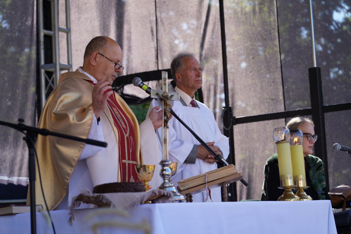 Iškilmes tradiciškai pradėjo šv. Mišios, kurias aukojo kunigas Jonas Matusevičius. Kartu su susirinkusiais buvo dėkojama Viešpačiui už šių metų žemės dovanas bei meldžiamasi už žemdirbius, kurie savo kasdieniais darbais ir vargais puoselėja žemę bei aprūpina mus maistu, prašyta malonės jų pastangoms, naujai sėjai ir naujam derliui.