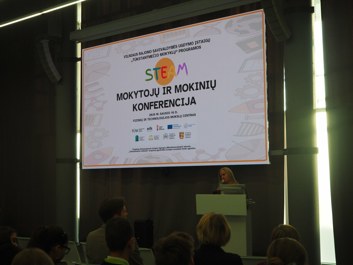2026 m. sausio 16 d. Fizinių ir technologijos mokslų centre Vilniaus rajono mokyklų bendruomenės susitiko pirmajame tokio formato „Tūkstantmečio mokyklų“ STEAM renginyje Vilniaus rajonui – STEAM mokytojų ir mokinių konferencijoje. Su smalsumu, šypsenomis ir labai praktišku nusiteikimu į renginį susirinko daugiau nei 130 dalyvių iš viso Vilniaus rajono bendrojo ugdymo įstaigų: ne paklausyti, o patirti, išbandyti ir parsivežti STEAM idėjų į savo mokyklas!