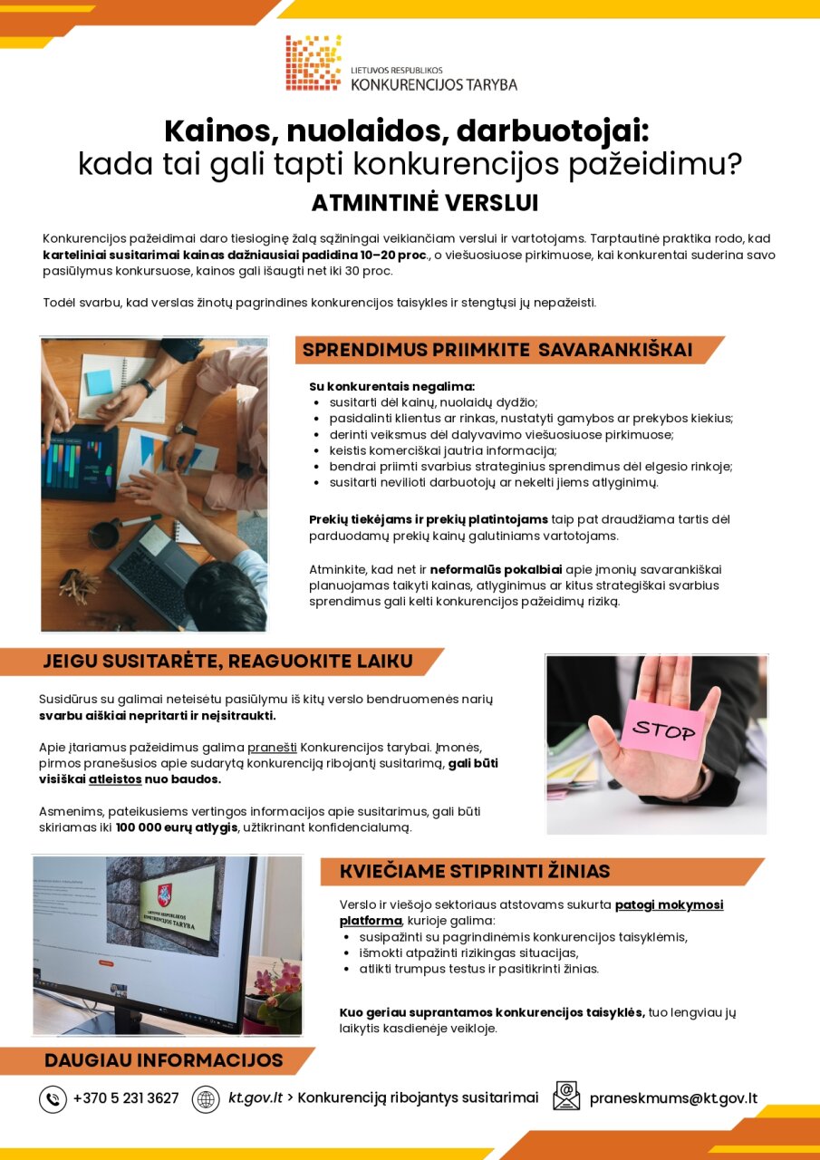Šia trumpa atmintine dalijasi Konkurencijos taryba, siekdama padėti verslo įmonėms ir jas vienijančioms organizacijoms lengviau atpažinti situacijas, kuriose gali kilti konkurencijos pažeidimų rizika.