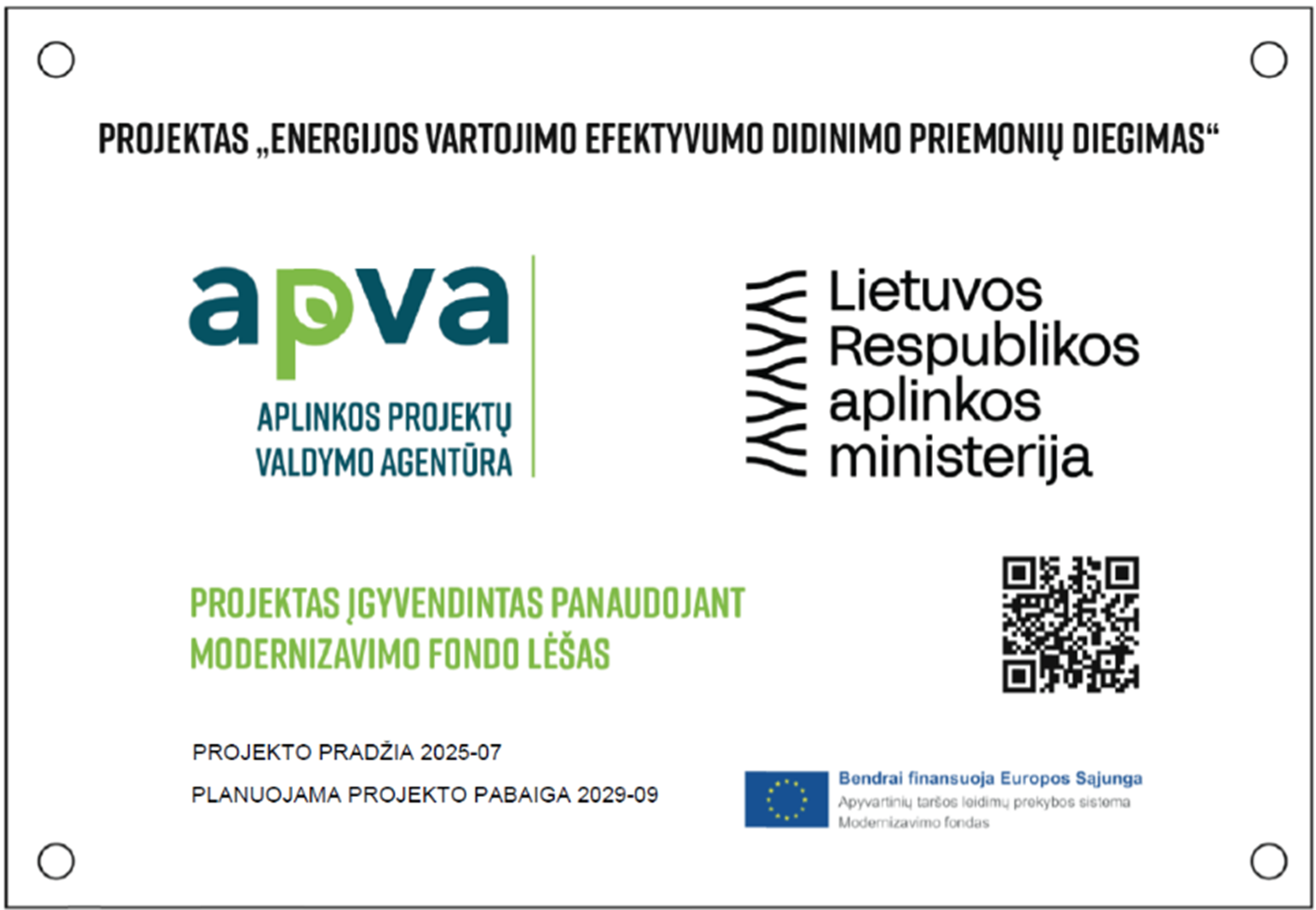 Projektas finansuojamas modernizavimo fondo lėšomis. Finansavimas skirtas pagal 2022–2030 metų plėtros programos valdytojos Lietuvos Respublikos aplinkos ministerijos aplinkos apsaugos ir klimato kaitos valdymo plėtros programos pažangos priemonės Nr. 02-001-06-04-01 „Skatinti pastatų renovaciją“ veiklą „Savivaldybių viešųjų pastatų atnaujinimas II“.